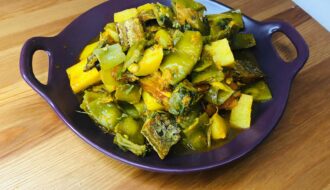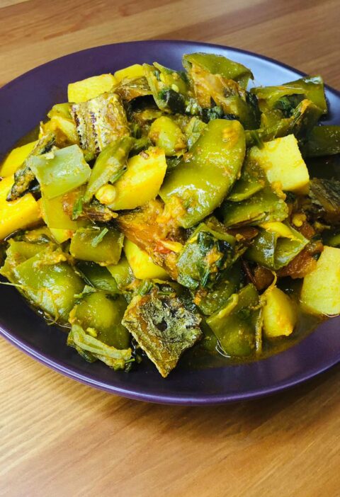 Chichinga Bhaji with Potato and Shrimp (চিচিঙ্গা ভাজি আলু ও চিংড়ি মাছ দিয়ে) is a traditional Bengali vegetable stir fry that celebrates the beauty of simple home cooking. Known as snake gourd in English, Chichinga is a slender, mild-flavored vegetable widely enjoyed in Bengali kitchens for its light texture and cooling qualities. When cooked with …