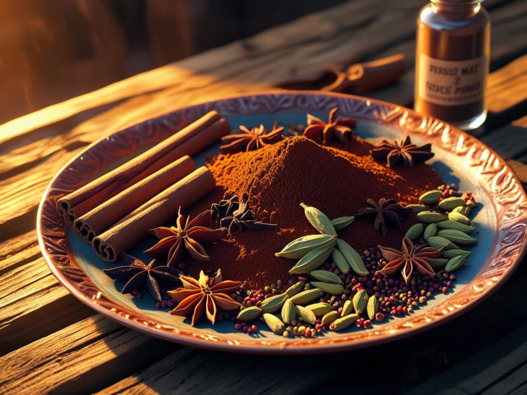 It usually combines warming spices like coriander, cumin, and black pepper with aromatic spices such as cardamom, cloves, and cinnamon. Some variations also include dried chilies and turmeric for color and heat.